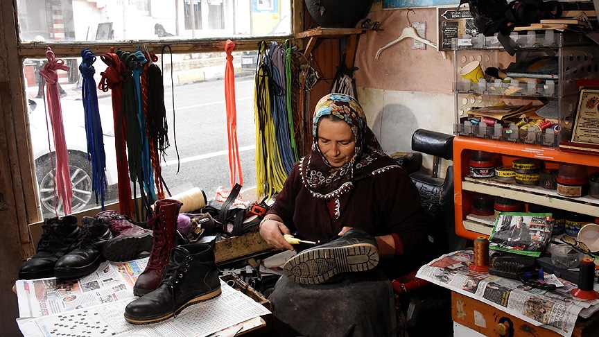 Ordu'nun Mesudiye ilçesinde 15 yıldır ayakkabı onarım eden Zeynep Kandar, aile mesleğine sahip çıkıyor.